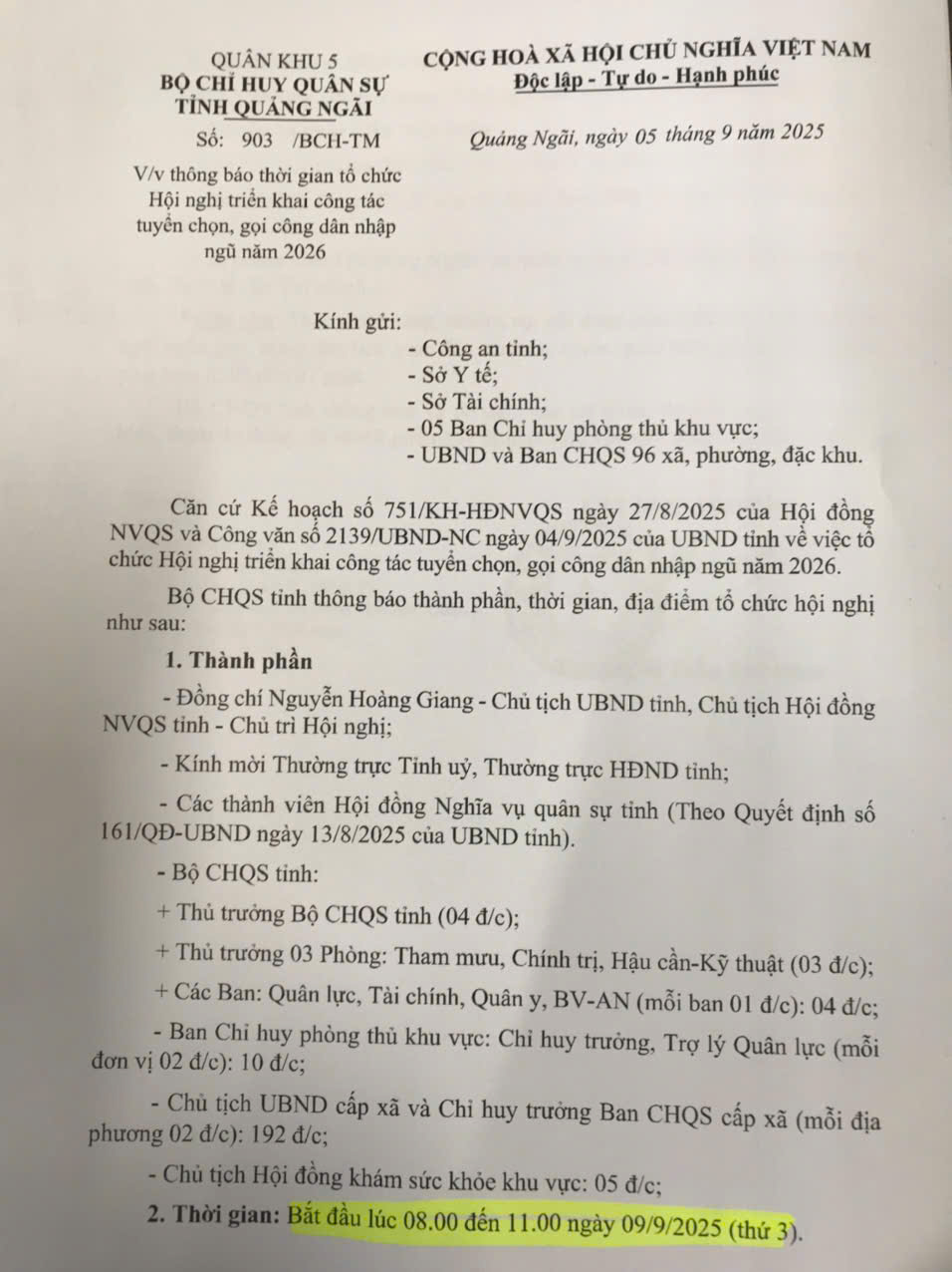 | 8h. Dự Hội nghị triển khai công tác tuyển chọn, gọi công dân nhập ngũ năm 2026Tài liệu: File đi kèm | Chủ tịch UBND tỉnh | Phòng họp C HT UBND tỉnh | Đ/c Dũng, Chủ tịch UBND; đ/c Nam, CHTQS xã | |
