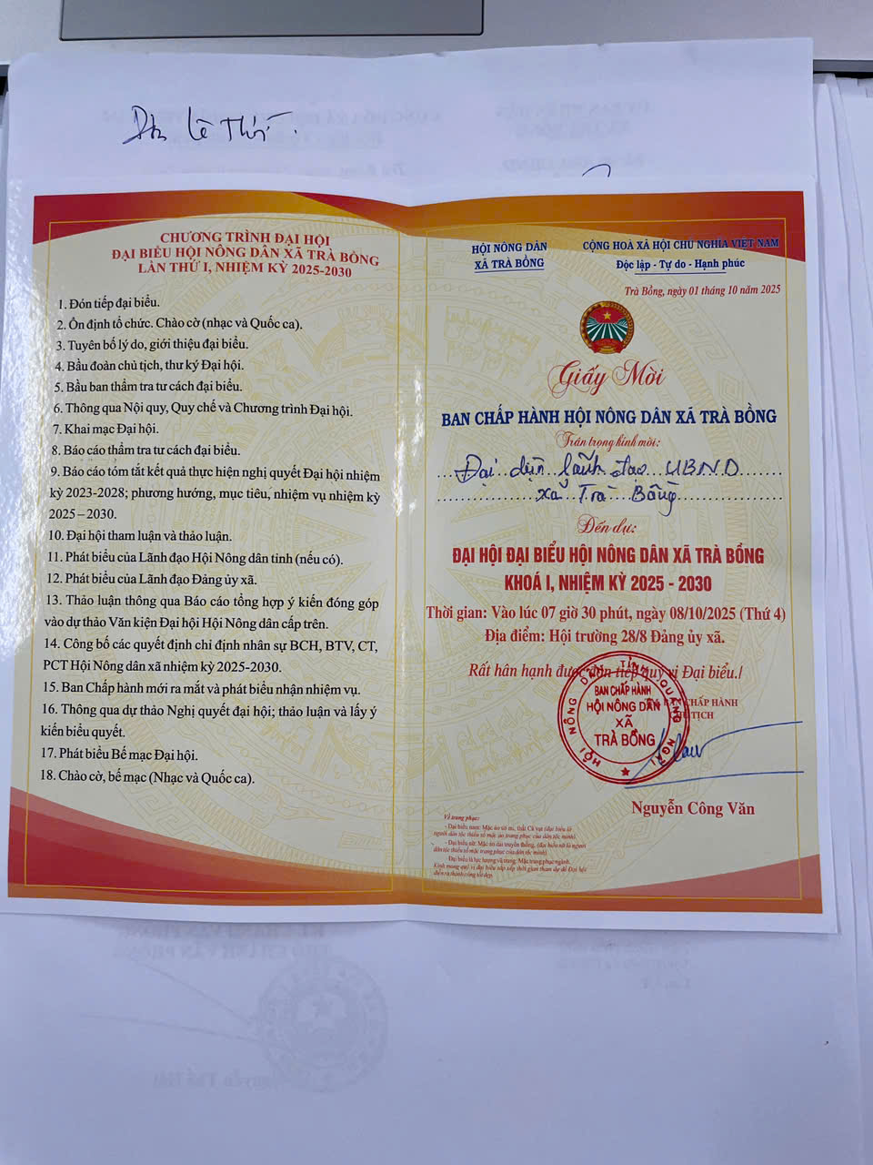 | 07h30. Dự Đại hội đại biểu Hội Nông dân xã nhiệm kỳ 2025-2030Tài liệu: File đi kèm | | Hội trường 28/8 Đảng uỷ | Đ/c Dũng, Chủ tịch UBND | |
